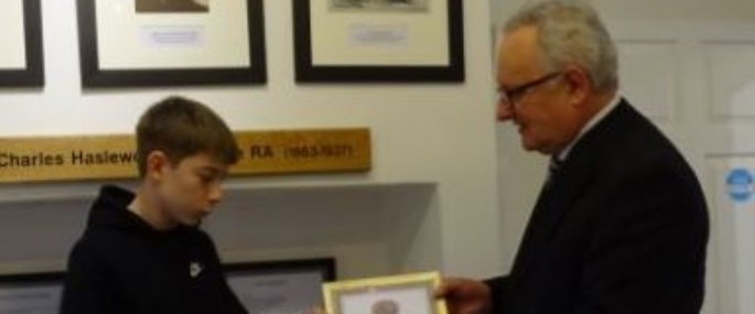 Edward receives his award for taking part in a competition run by Carre Street Gallery, Sleaford
